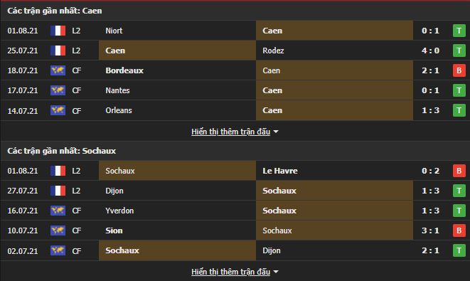 Phong độ gần đây Caen vs Sochaux: