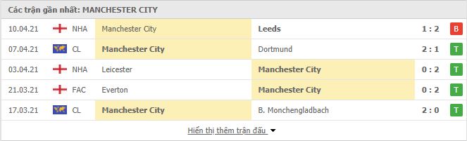 Thống kê phong độ gần đây Chelsea vs Manchester City