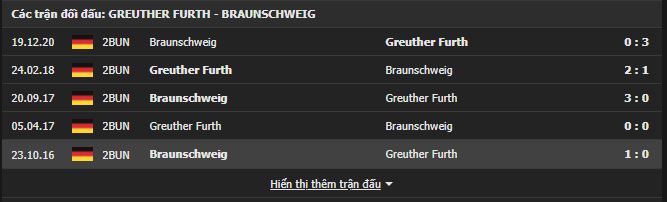 Thành tích đối đầu Greuther Furth vs Eintracht Braunschweig: