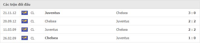 Lịch sử đối đầu Juventus vs Chelsea