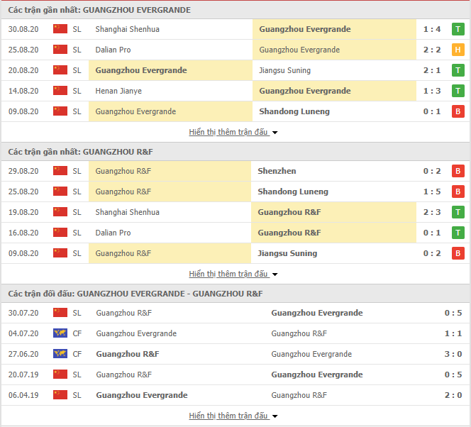 Thống kê phong độ & Lịch sử đối đầu Guangzhou Evergrande vs Guangzhou R&F