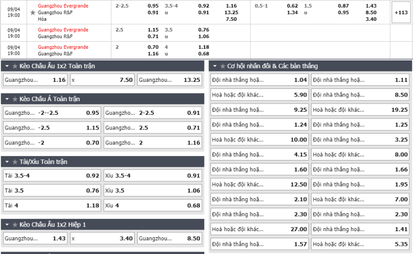 - Tỷ lệ kèo bóng đá Guangzhou Evergrande vs Guangzhou R&F