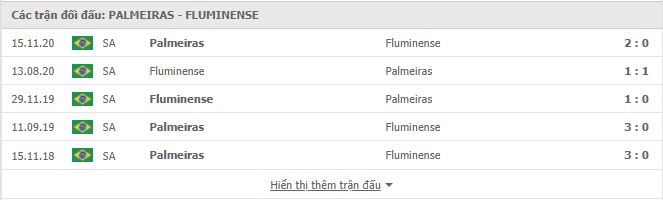 Thành tích đối đầu Palmeiras vs Fluminense