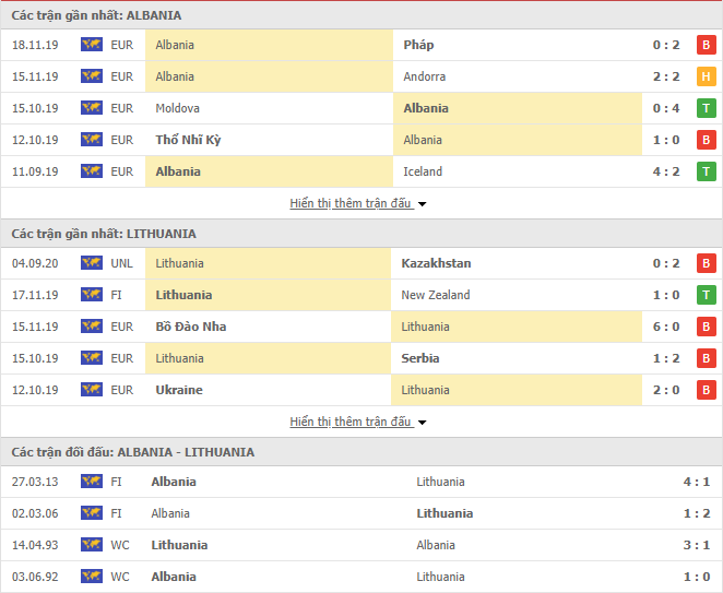 Phong độ gần đây & Thành tích đối đầu Albania vs Lithuania