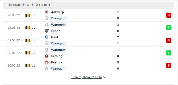 Thống kê phong độ gần đây Waregem vs St. Truiden